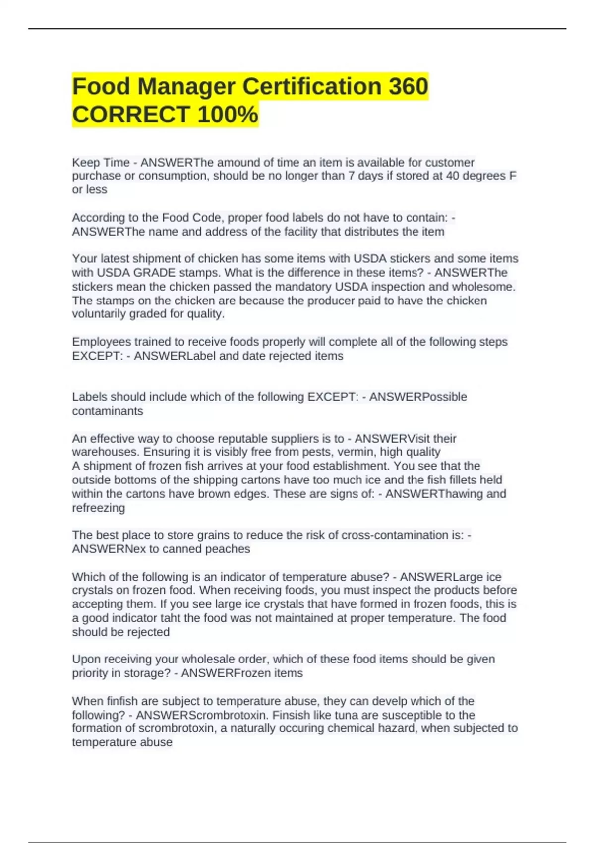 *Food Manager Certification 360 CORRECT 100% - Food Manager *